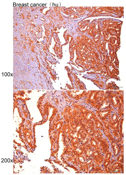 Immunohistochemistry of paraffin-embedded Human breast cancer with IGF1R antibody diluted at 1:30