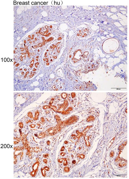 Immunohistochemistry of paraffin-embedded Human breast cancer with C4BPA antibody diluted at 1:35