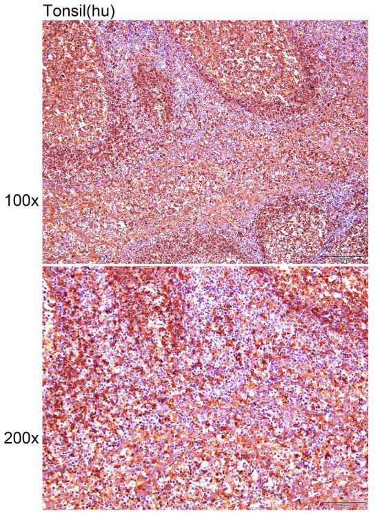 Immunohistochemistry of paraffin-embedded Human tonsil with HLA-DRA antibody diluted at 1:50