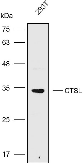 Western blot analysis with CTSL antibody diluted at 1:1000; Lane: 293T