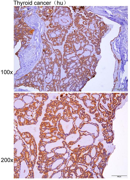 Immunohistochemistry of paraffin-embedded Human thyroid cancer with CTSL antibody diluted at 1:50