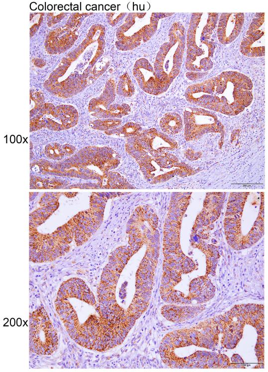 Immunohistochemistry of paraffin-embedded Human colorectal cancer with ACAA2 antibody diluted at 1:50