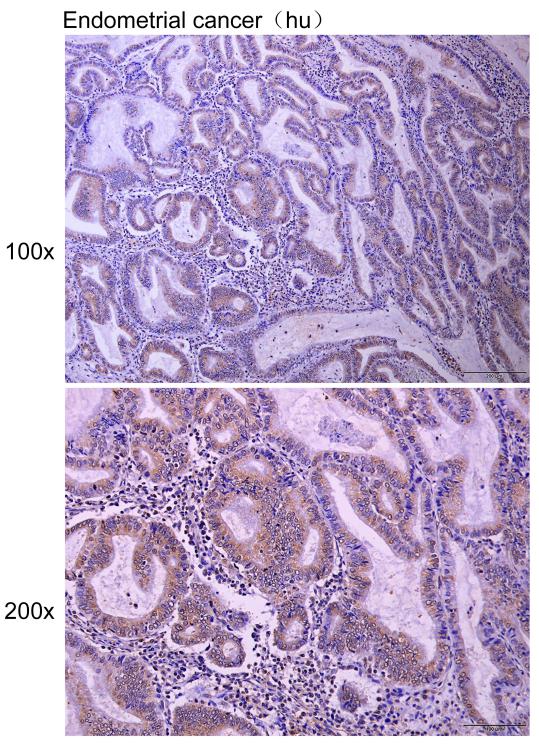 Immunohistochemistry of paraffin-embedded Human endometrial cancer with IGFBP5 antibody diluted at 1:25