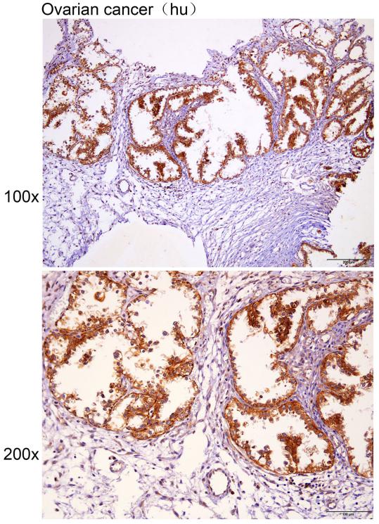 Immunohistochemistry of paraffin-embedded Human ovarian cancer with RAMP3 antibody diluted at 1:50