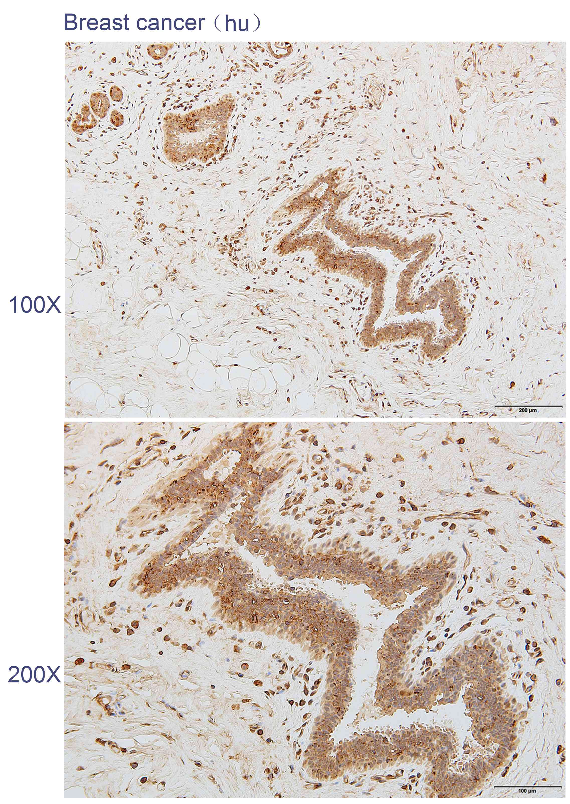 Immunohistochemistry of paraffin-embedded Human breast cancer using GAPDH antibody diluted at 1:100