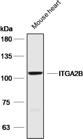Western blot analysis with ITGA2B antibody diluted at 1:3000;Lane: Mouse heart.
