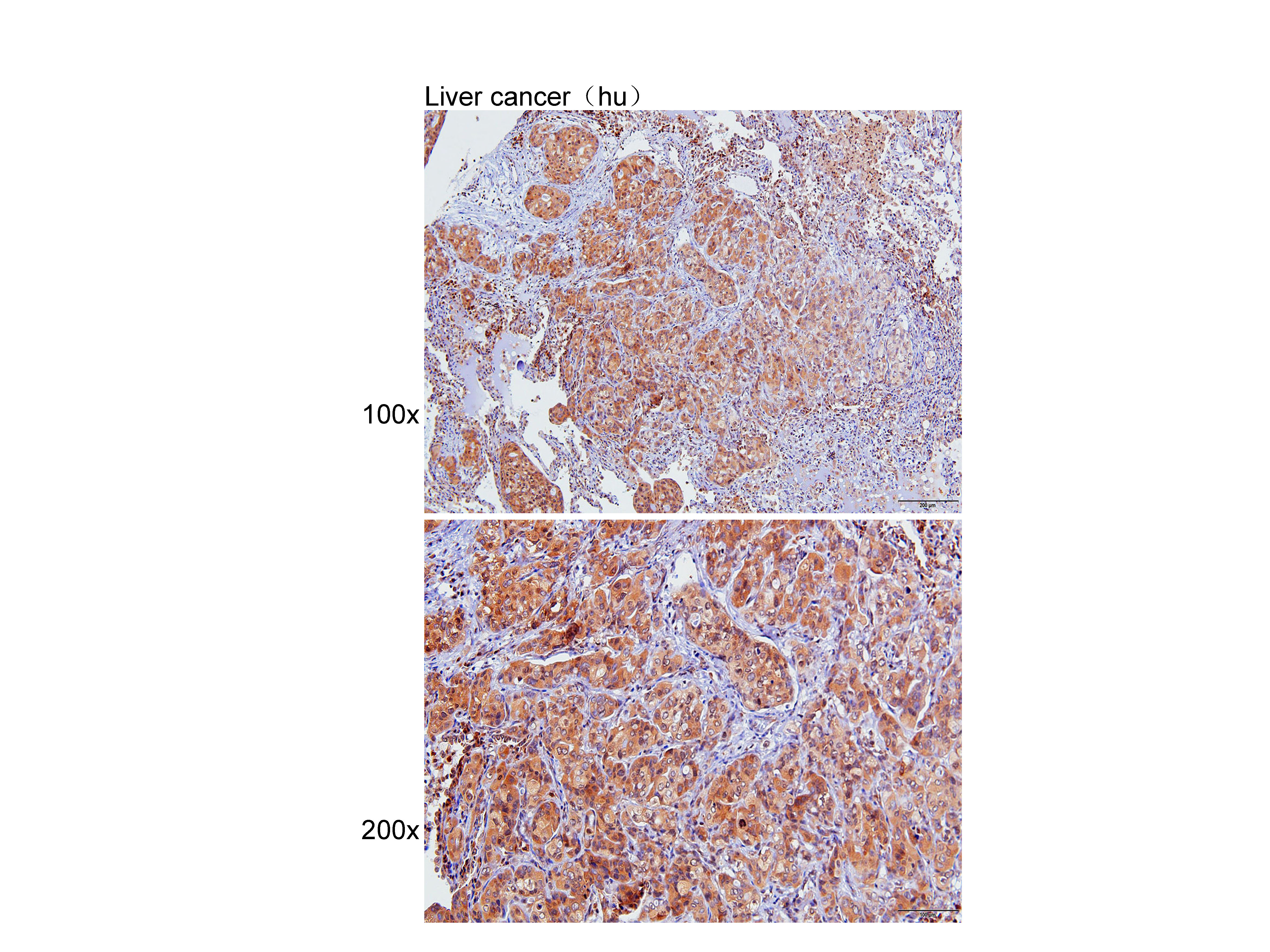 Immunohistochemistry of paraffin-embedded Liver cancer(hu) using GABA A Receptor alpha 1 at dilution of 1:50 (x100 lens,x200 lens).