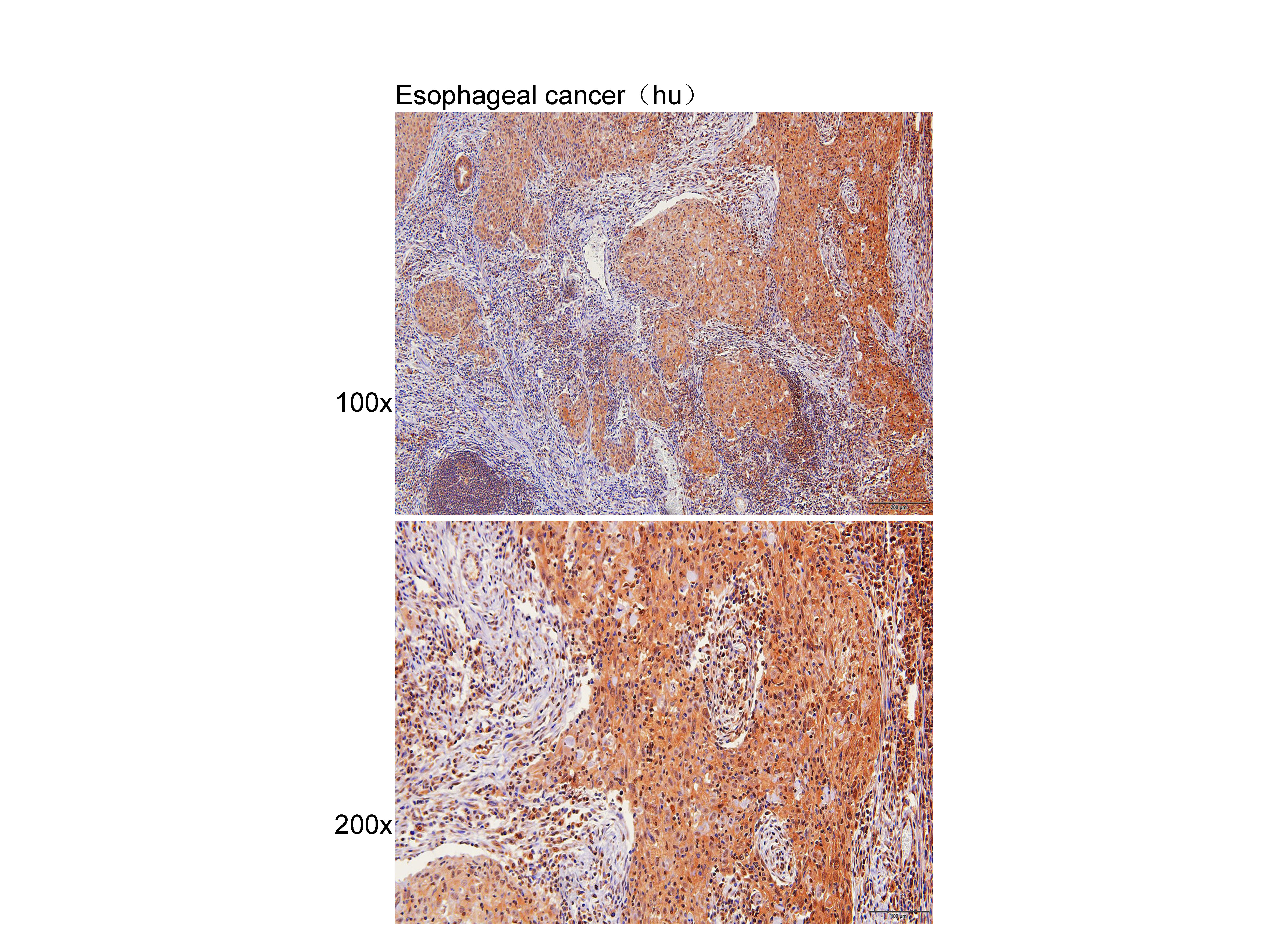 Immunohistochemistry of paraffin-embedded Esophageal cancer(hu) using GABA A Receptor alpha 1 at dilution of 1:50 (x100 lens,x200 lens).