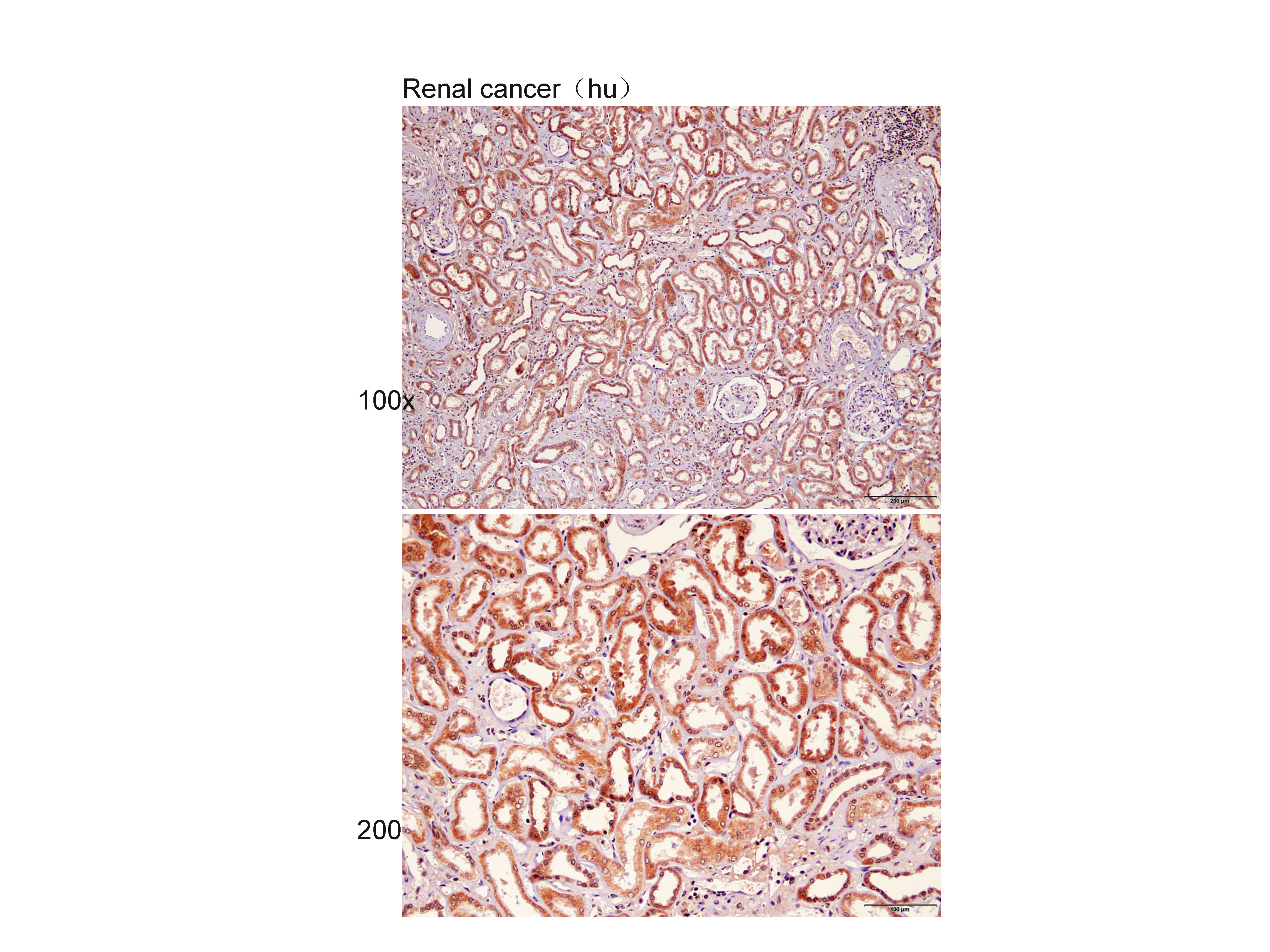 Immunohistochemistry of paraffin-embedded Renal cancer(hu) using TRP12 at dilution of 1:100 (x100 lens,x200 lens).