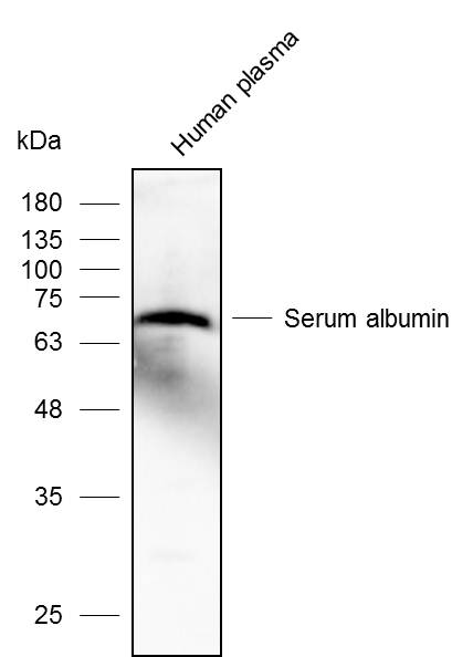 Western blot analysis with Serum albumin antibody at dilution at 1:1000