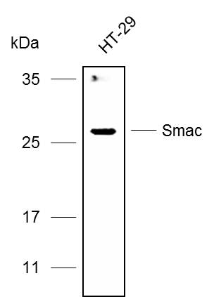 Western blot analysis with Smac antibody at dilution at 1:1000