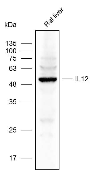 Western blot analysis with IL12 antibody at dilution at 1:1000