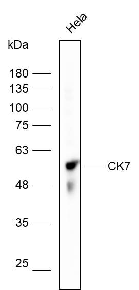 Western blot analysis with CK7 antibody at dilution at 1:1000
