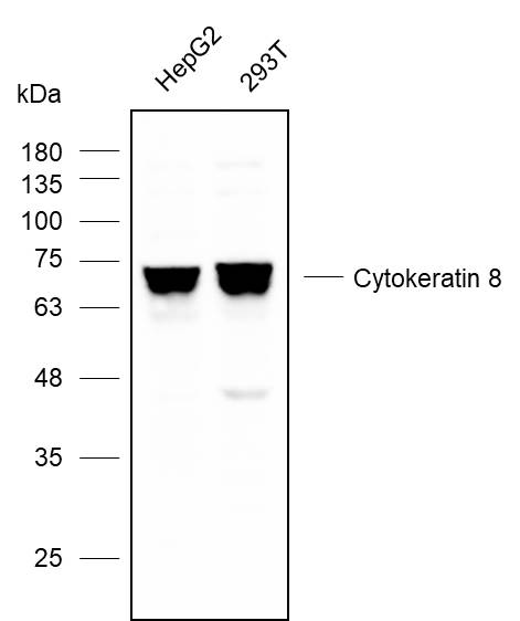 Western blot analysis with Cytokeratin8 antibody at dilution at 1:1000
