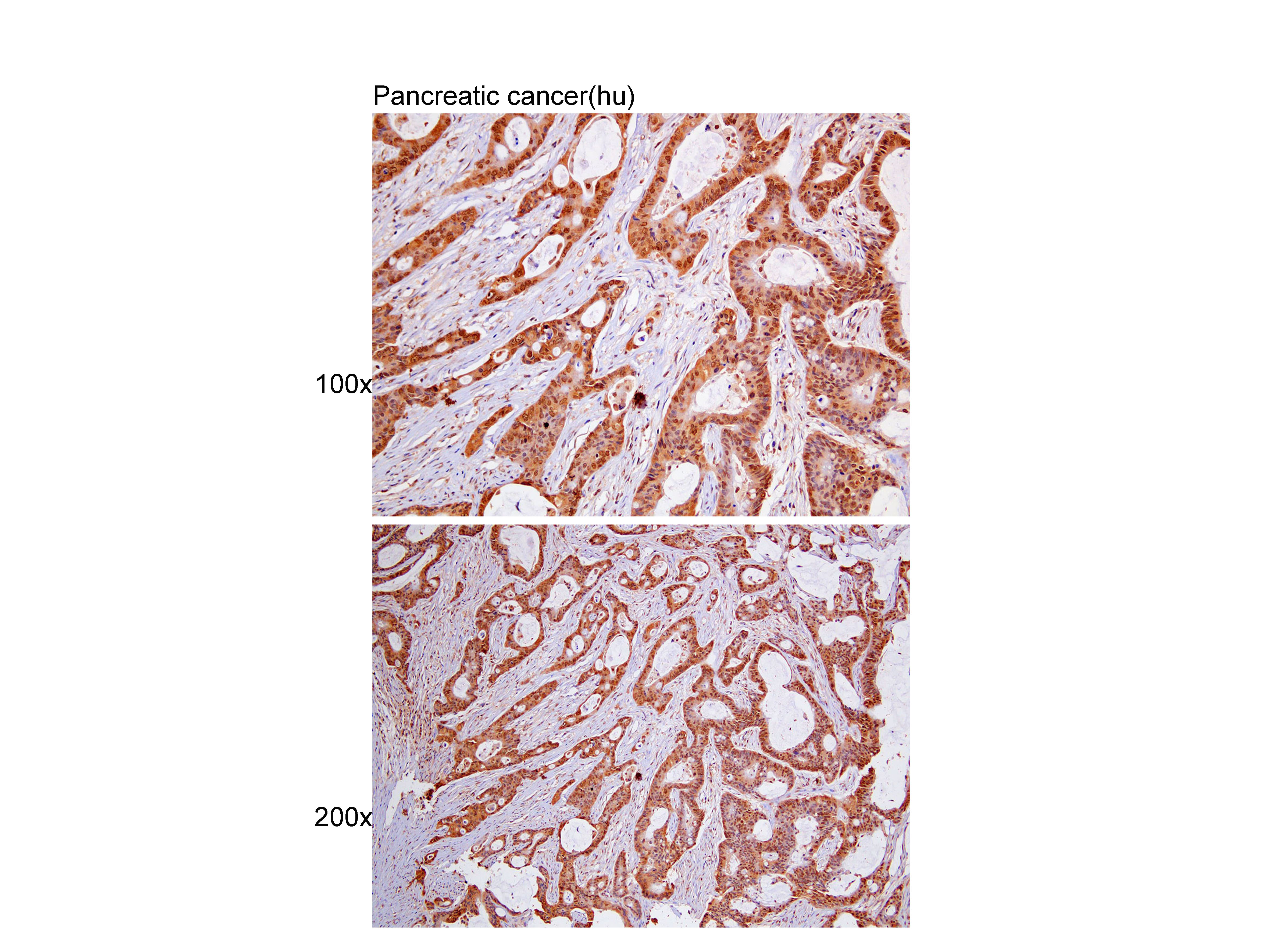 Immunohistochemistry of paraffin-embedded Pancreatic cancer(hu) using Cytokeratin8 at dilution of 1:100 (x100 lens,x200 lens).