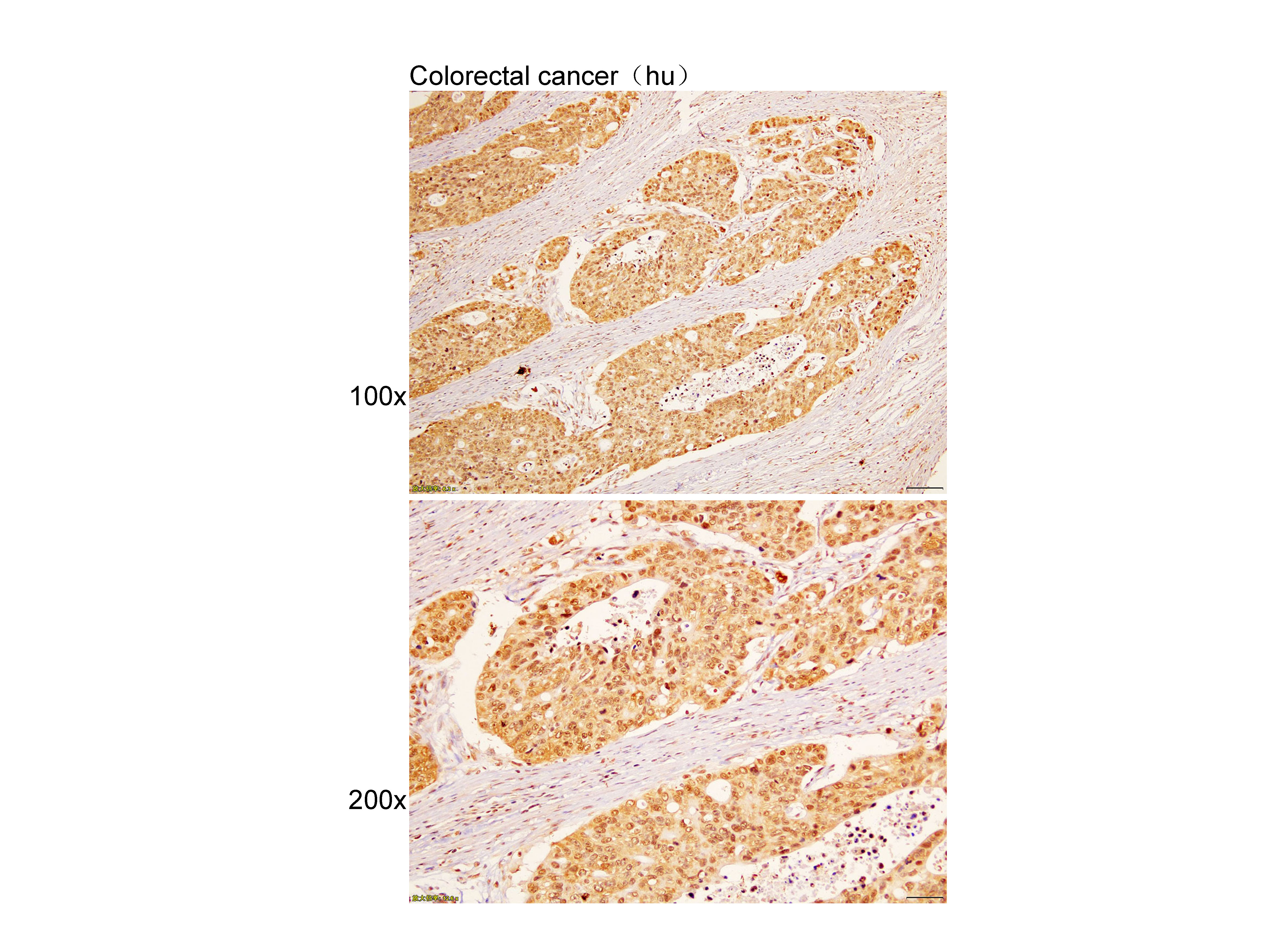 Immunohistochemistry of paraffin-embedded Colorectal cancer(hu) using Cytokeratin8 at dilution of 1:100 (x100 lens,x200 lens).