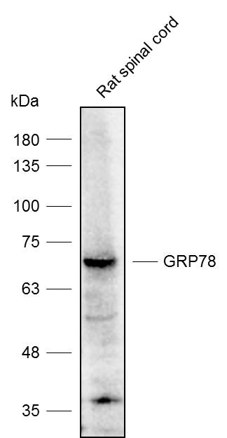 Western blot analysis with GRP78 antibody diluted at 1:1000;Lane: Rat spinal cord.