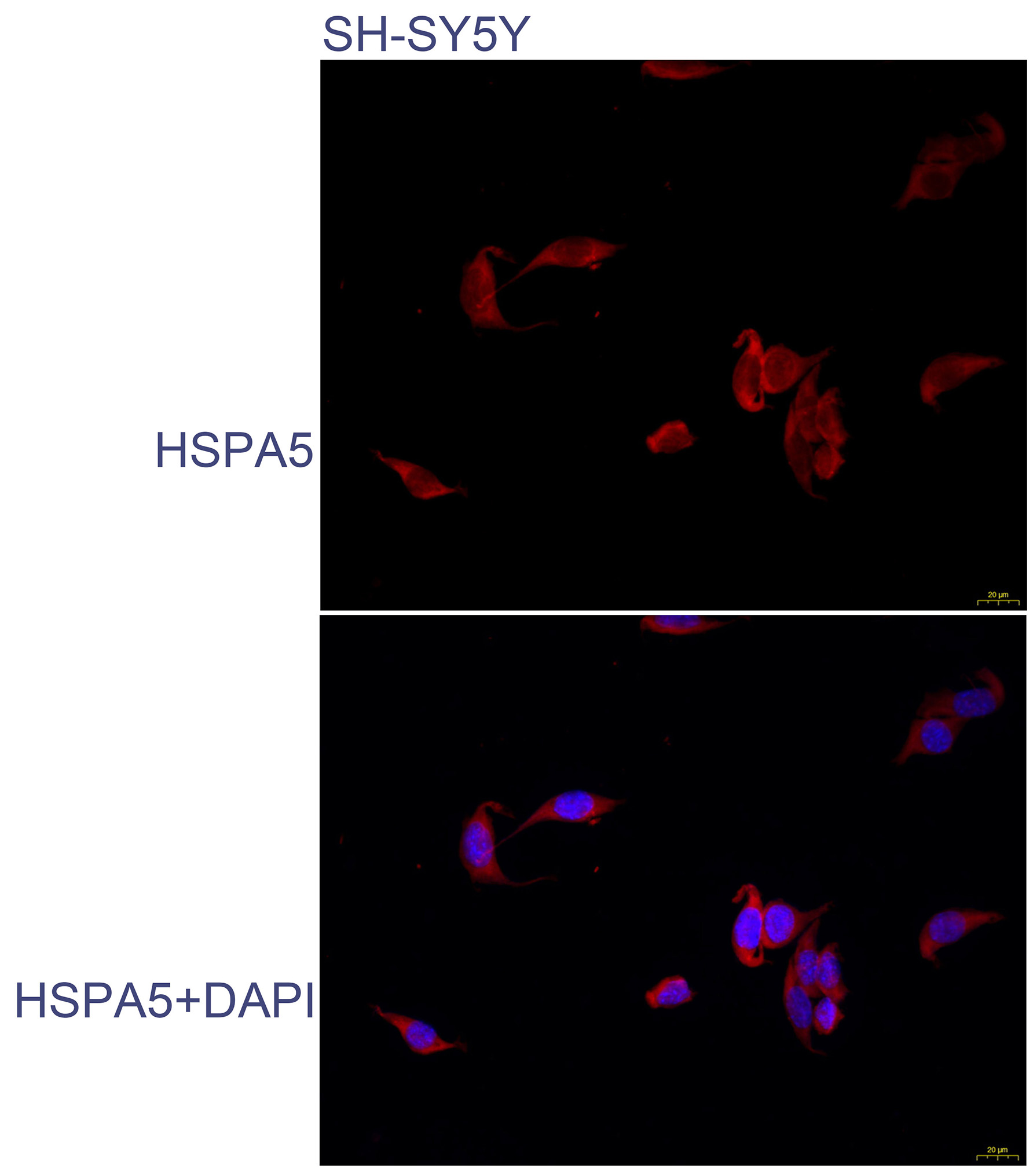 Immunofluorescence analysis of SH-SY5Y cells using GRP78 antibody diluted at 1:100.