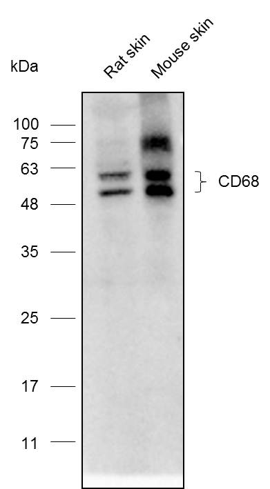 Western blot analysis with CD68 antibody at dilution at 1:1000