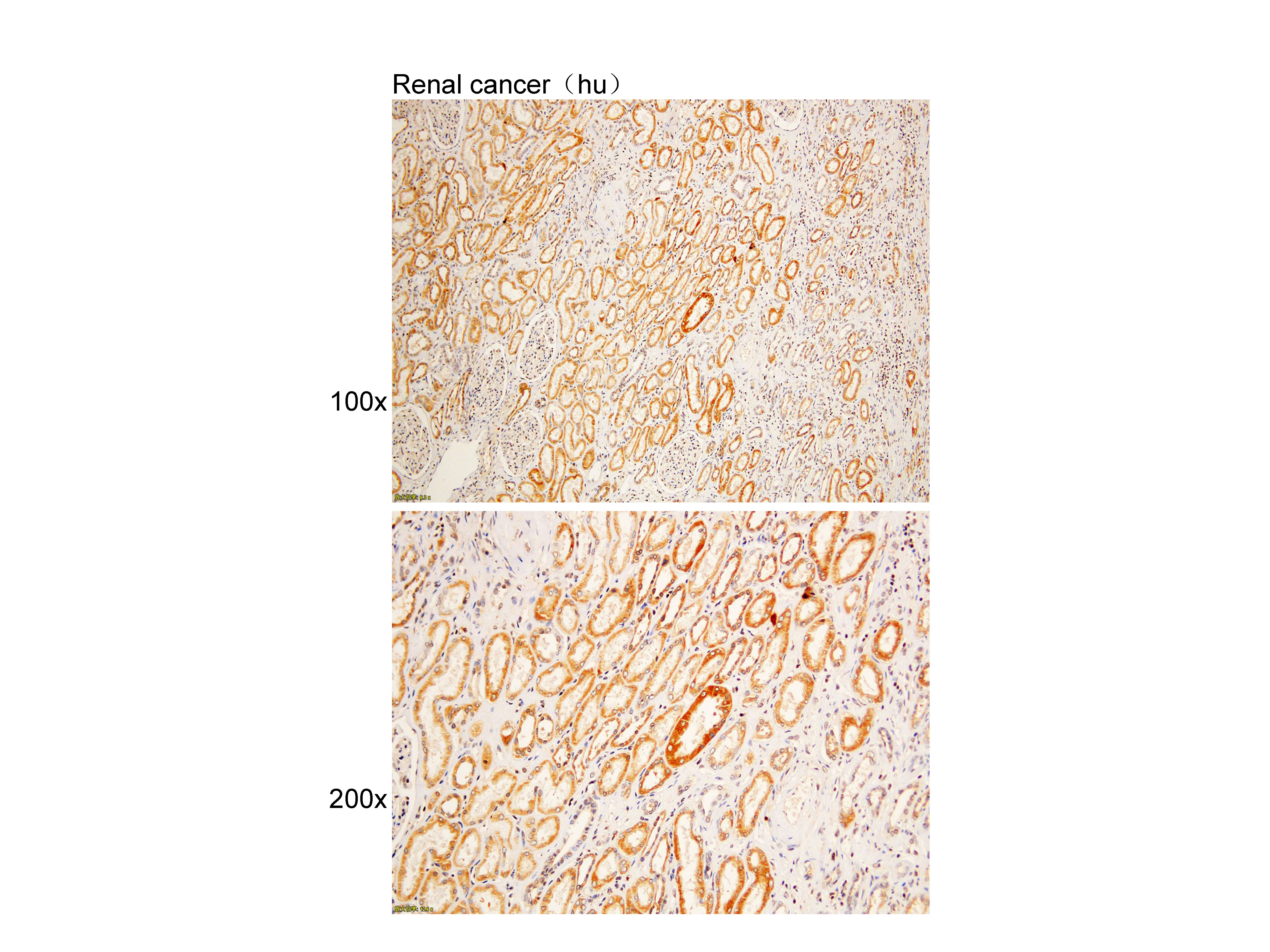 Immunohistochemistry of paraffin-embedded Renal cancer(hu) using PDGF-A at dilution of 1:100 (x100 lens,x200 lens).