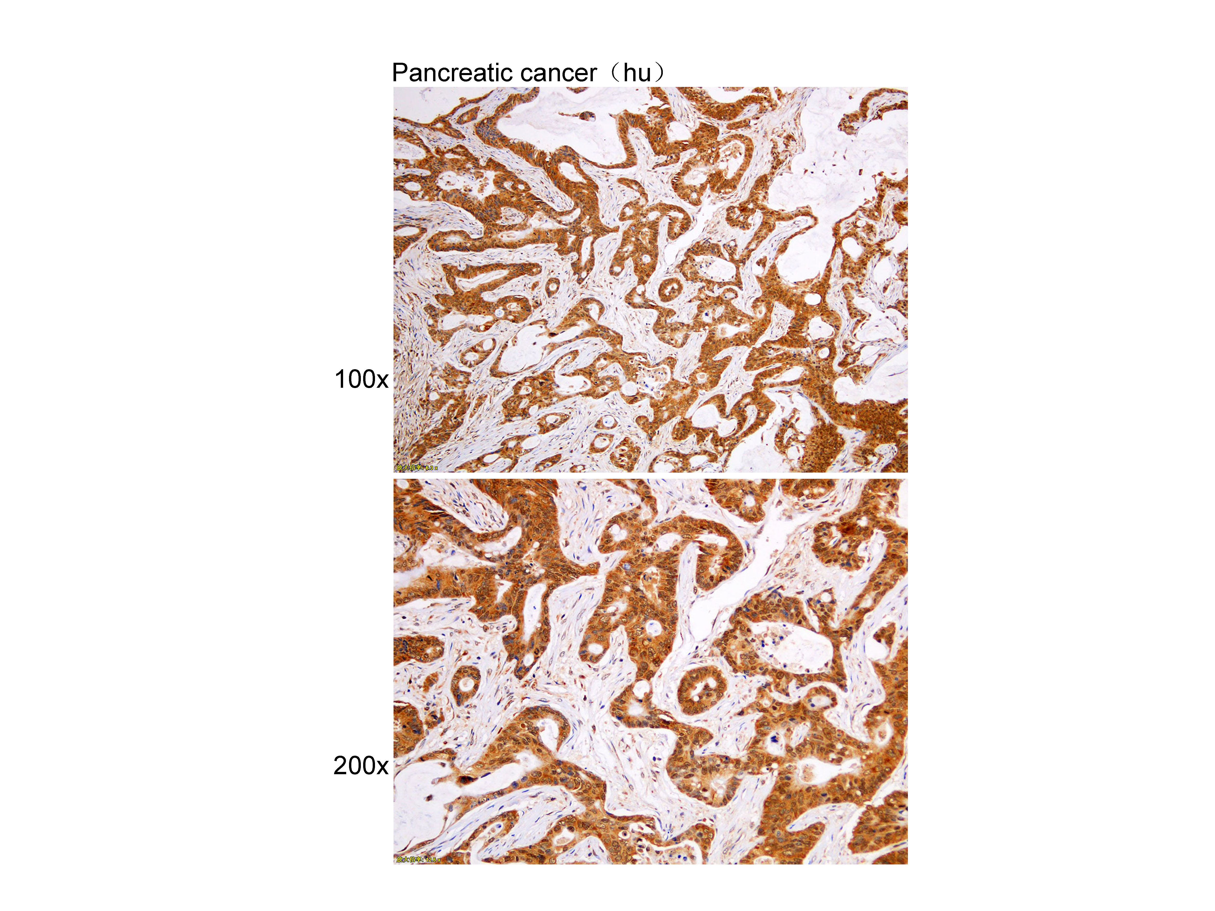 Immunohistochemistry of paraffin-embedded Pancreatic cancer(hu) using Cyclin B1 at dilution of 1:100 (x100 lens,x200 lens).