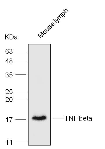 Western blot analysis with TNF beta antibody at dilution at 1:1000