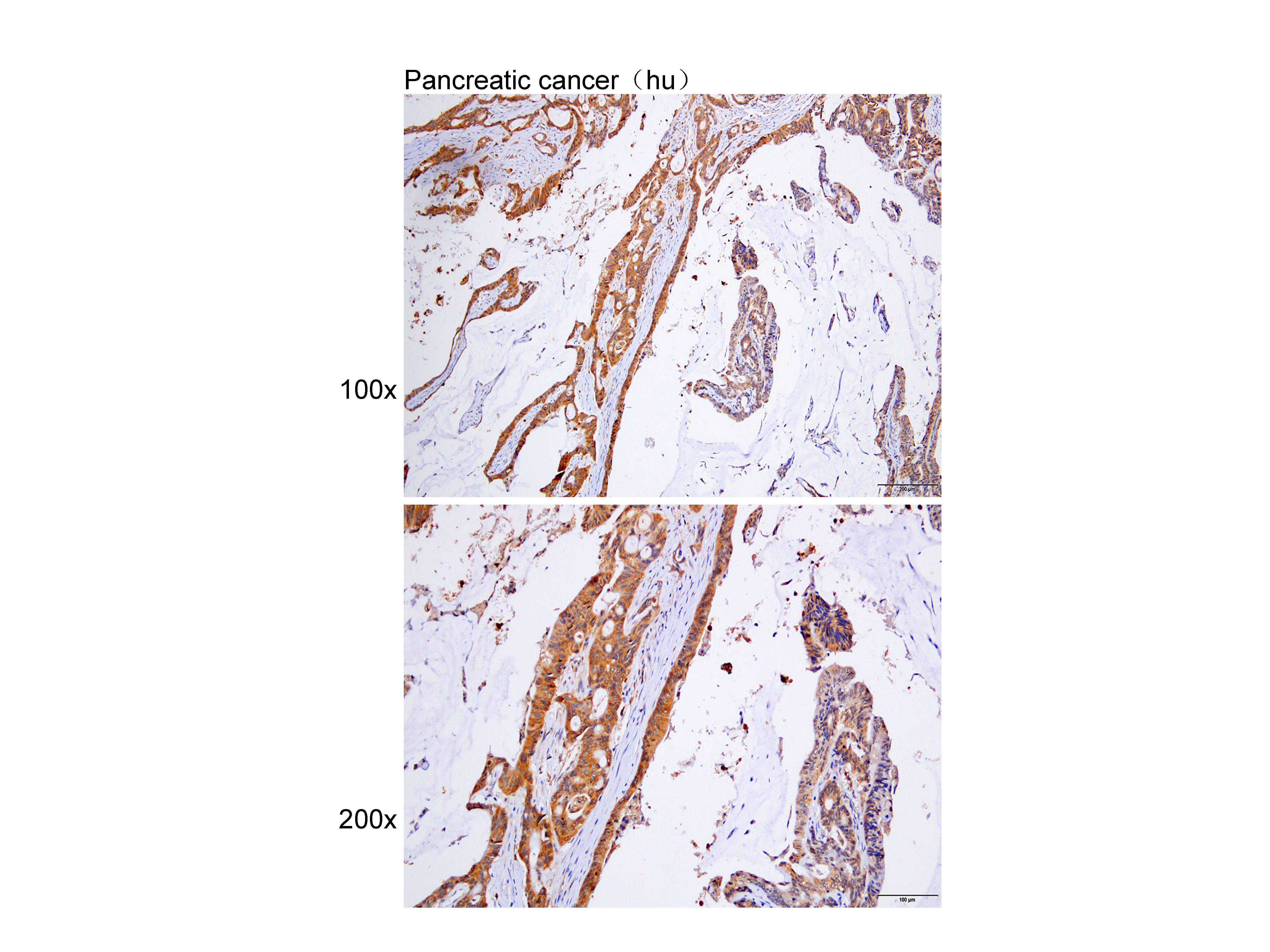 Immunohistochemistry of paraffin-embedded Pancreatic cancer(hu) using DIABLO at dilution of 1:100 (x100 lens,x200 lens).