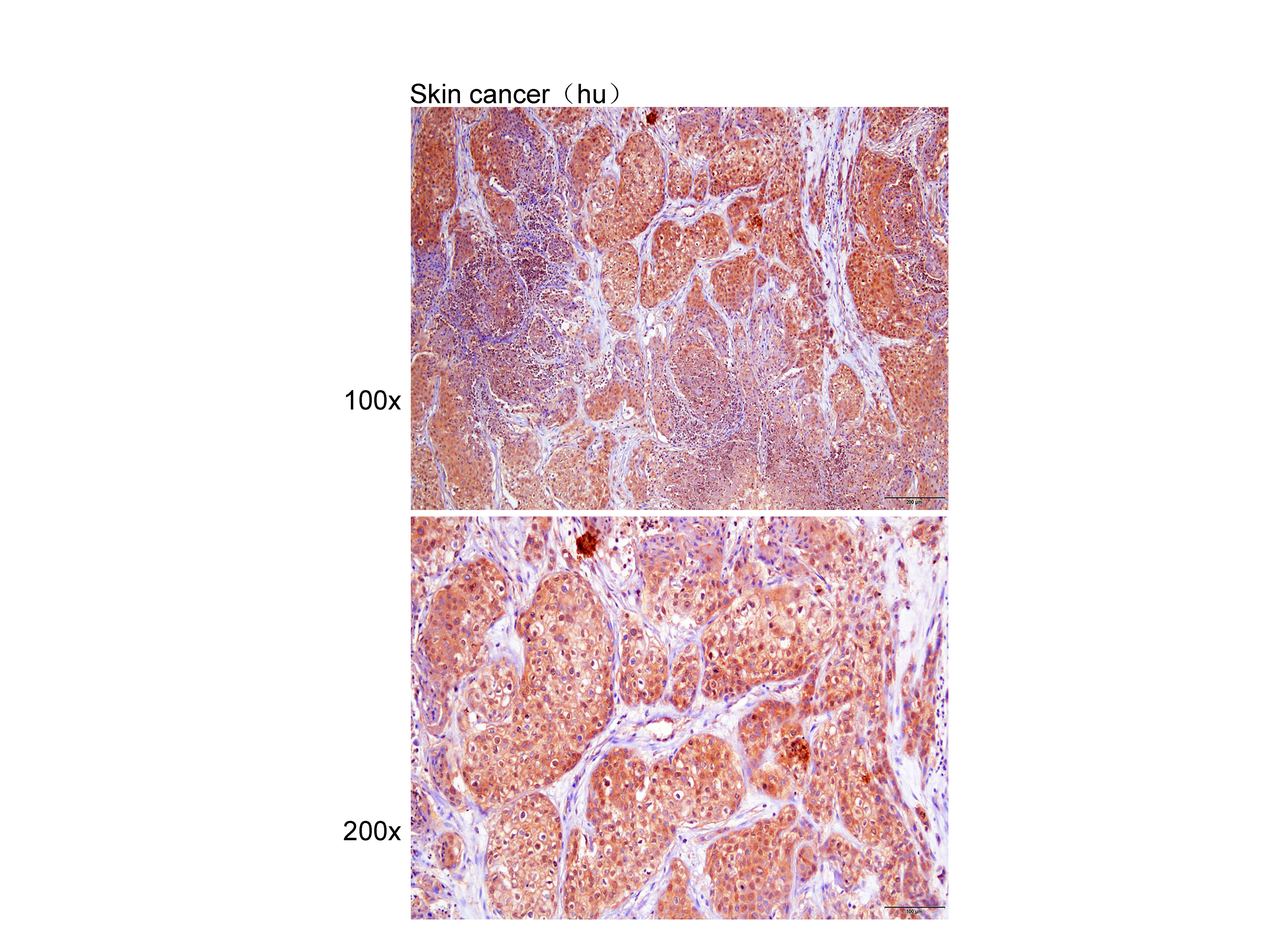 Immunohistochemistry of paraffin-embedded Skin cancer(hu) using SOX10 at dilution of 1:50 (x100 lens,x200 lens).