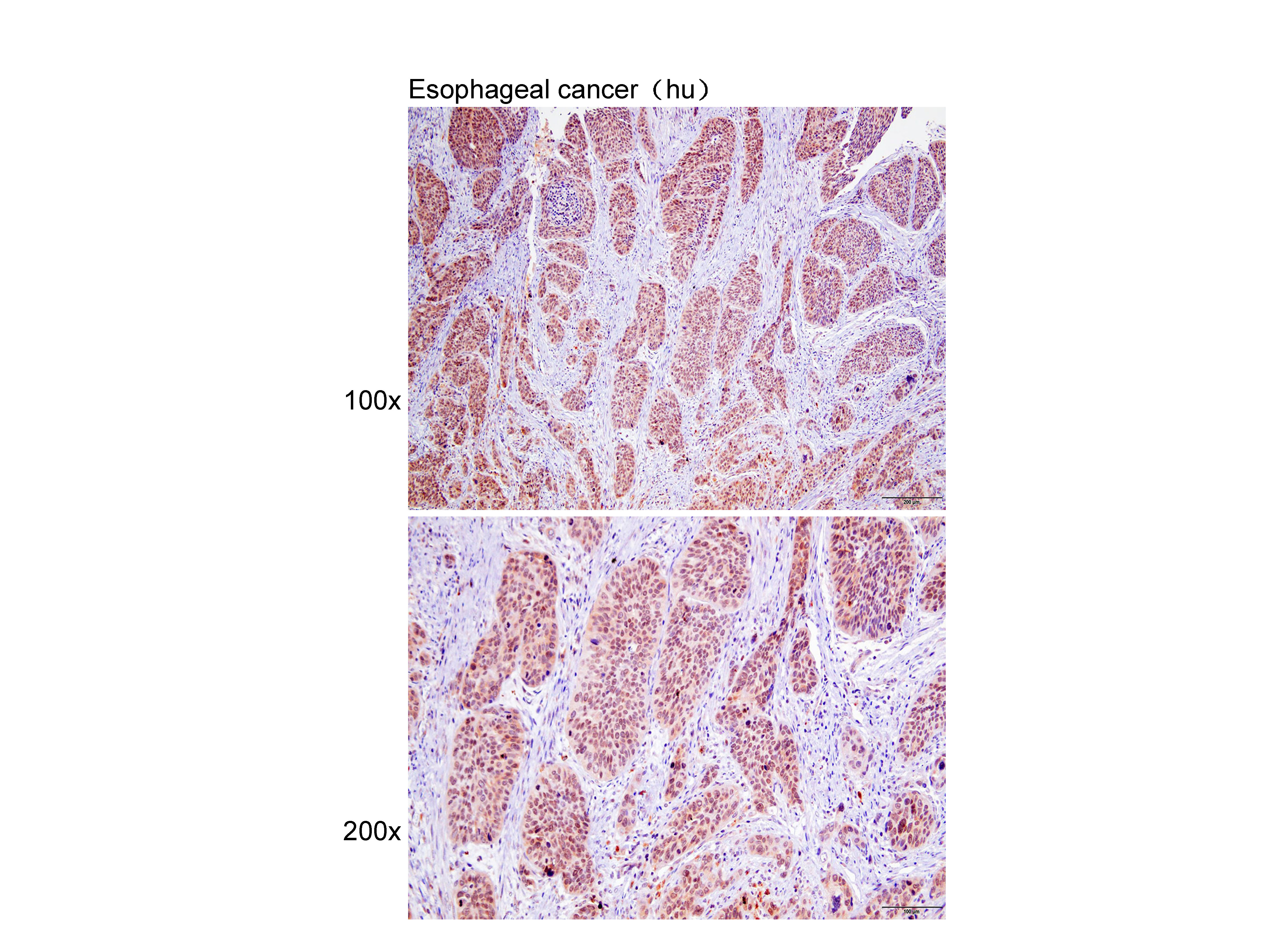 Immunohistochemistry of paraffin-embedded Esophageal cancer(hu) using SOX10 at dilution of 1:100 (x100 lens,x200 lens).