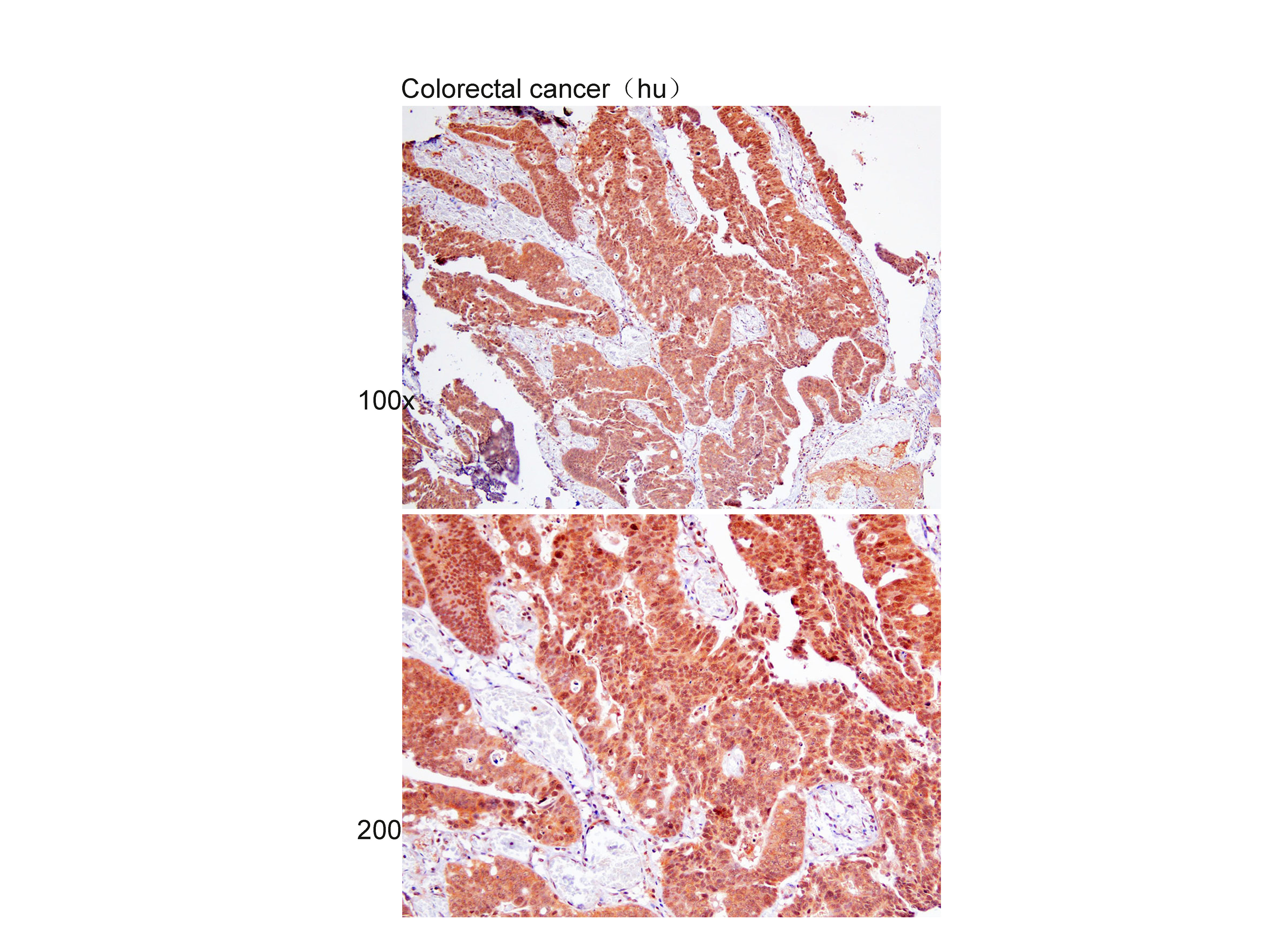 Immunohistochemistry of paraffin-embedded Colorectal cancer(hu) using TLR7 at dilution of 1:25 (x100 lens,x200 lens).