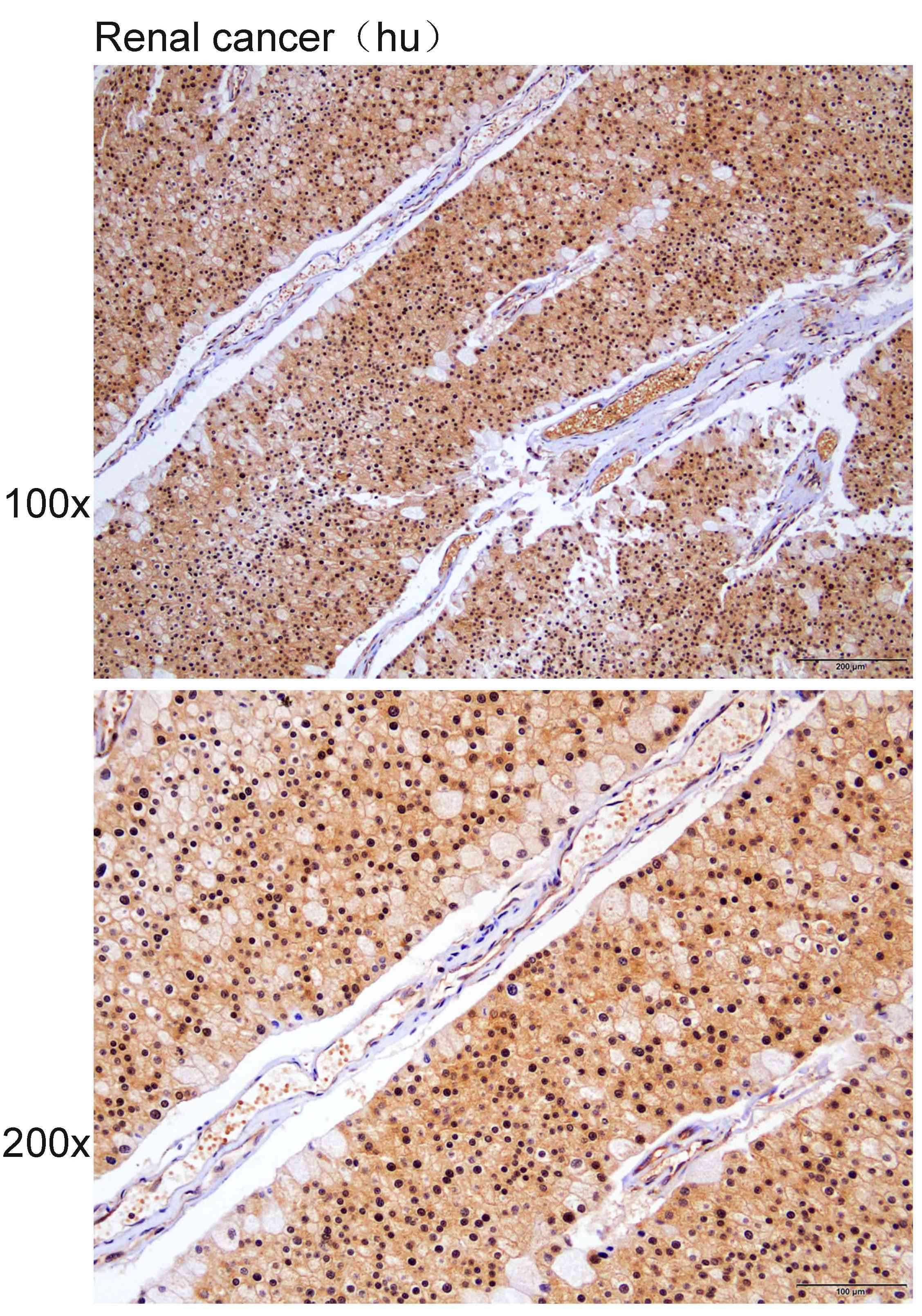 Immunohistochemistry of paraffin-embedded Human renal cancer with Aurora B antibody diluted at 1:50.