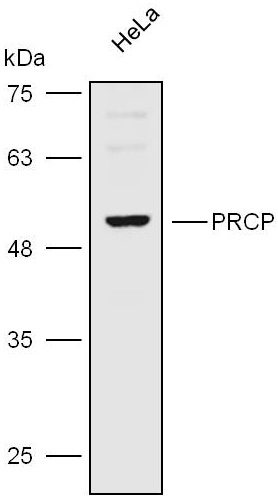 Western blot analysis with PRCP antibody diluted at 1:6000;Lane: HeLa.