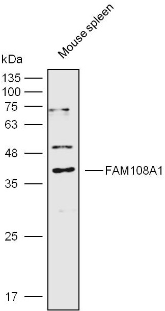 Western blot analysis with FAM108A1 antibody diluted at 1:11000;Lane:Mouse spleen