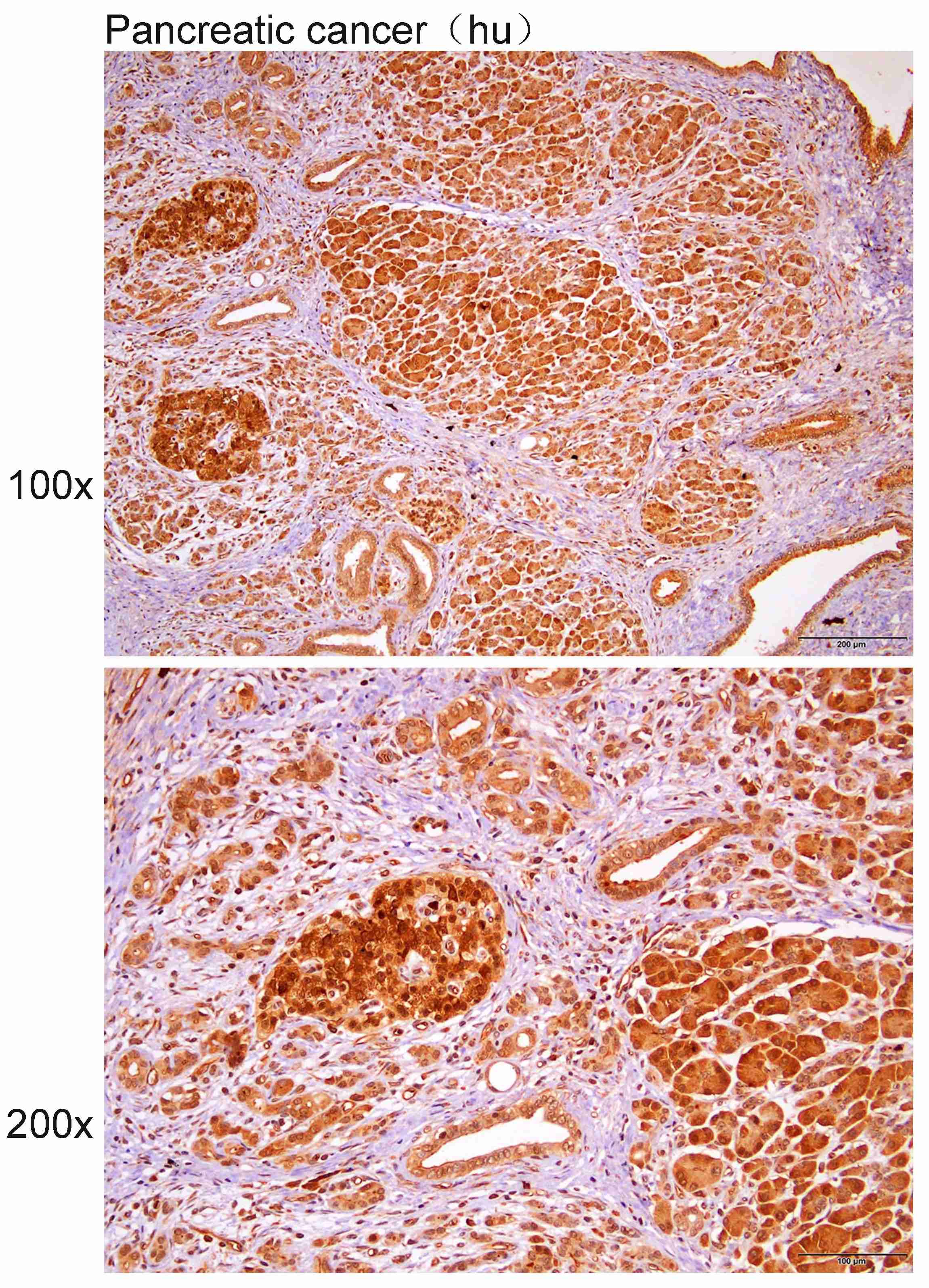 Immunohistochemistry?of?paraffin-embedded?Human pancreatic cancer?with?UBA52 antibody diluted at 1:10