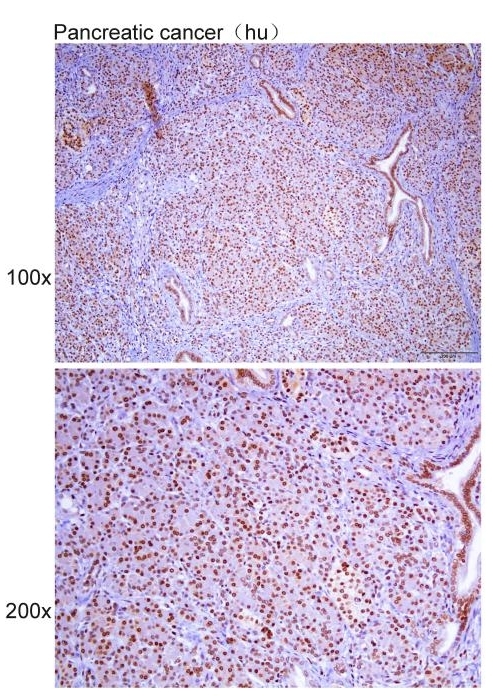 Immunohistochemistry?of?paraffin-embedded?Human pancreatic cancer?with?ACTN4 antibody diluted at 1:200