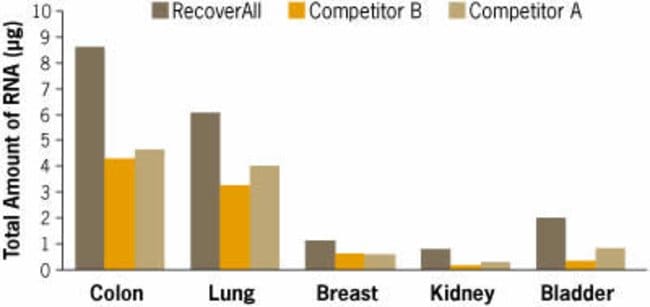 Yield of RNA from archived Human FFPE tissue samples: RecoverAll™ vs two competitor sytems