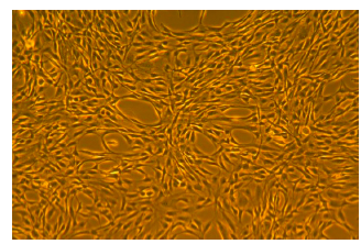 Show below, right: HMSC-Ad differentiated into Chondrocytes using a competitor chondrogenesis differentiation kit and stained with Lifeline® Alcian Blue Staining Kit to visualize the proteoglycan deposition, post 3 weeks differentiation (100X).