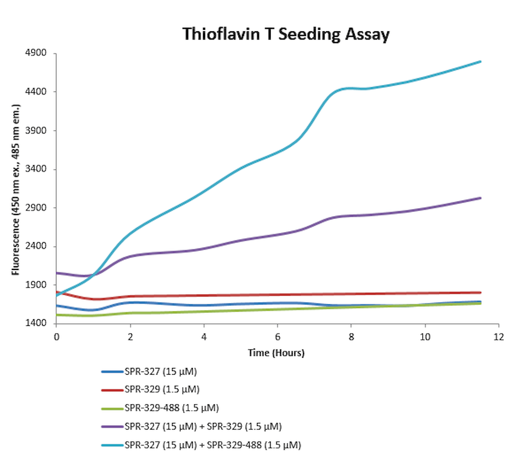 | 分析证书 | 硫*磺素 T 发射光谱曲线显示当活性tau PFFs:ATTO-488与活性tau单体结合时荧光强度增强 (相关于tau蛋白聚集)。37℃下,200 rpm在加富培养基中经过139小时孵育通过了无菌检测 (OD600 值与阴性对照相当). |