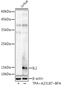 Western blot analysis with IL2 antibody diluted at 1:1000.Lane:Jurkat.