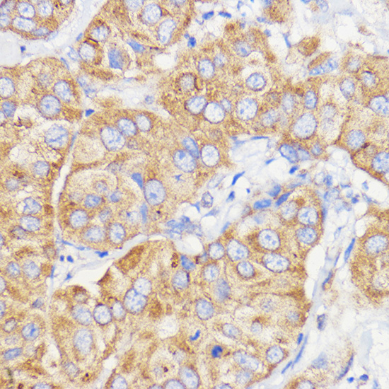 Immunohistochemistry of paraffin-embedded Human breast cancer with COL2A1 antibody diluted at 1:100