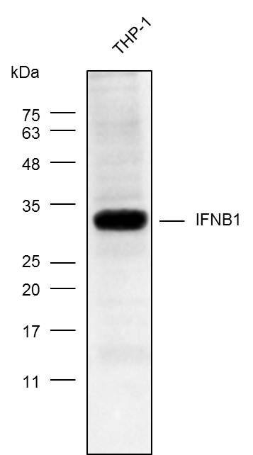 Western blot analysis with IFNB1 antibody diluted at 1:1000;Lane:THP-1
