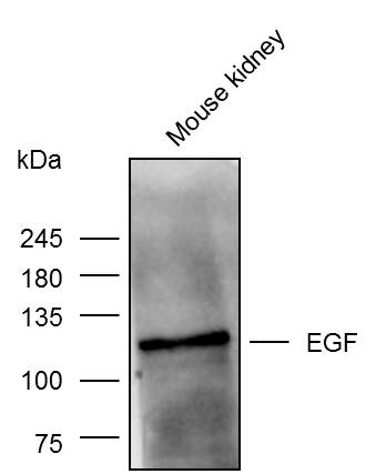 Western blot analysis with EGF antibody diluted at 1:1000;Lane:Mouse kindy