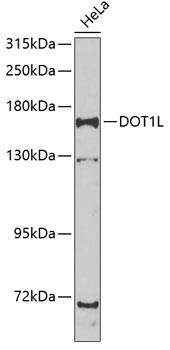 Western blot analysis with DOT1L antibody diluted at 1:1000;Lane:HeLa