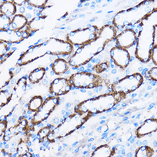 Immunohistochemistry of paraffin-embedded Mouse kidney with IL23R antibody diluted at 1:100.
