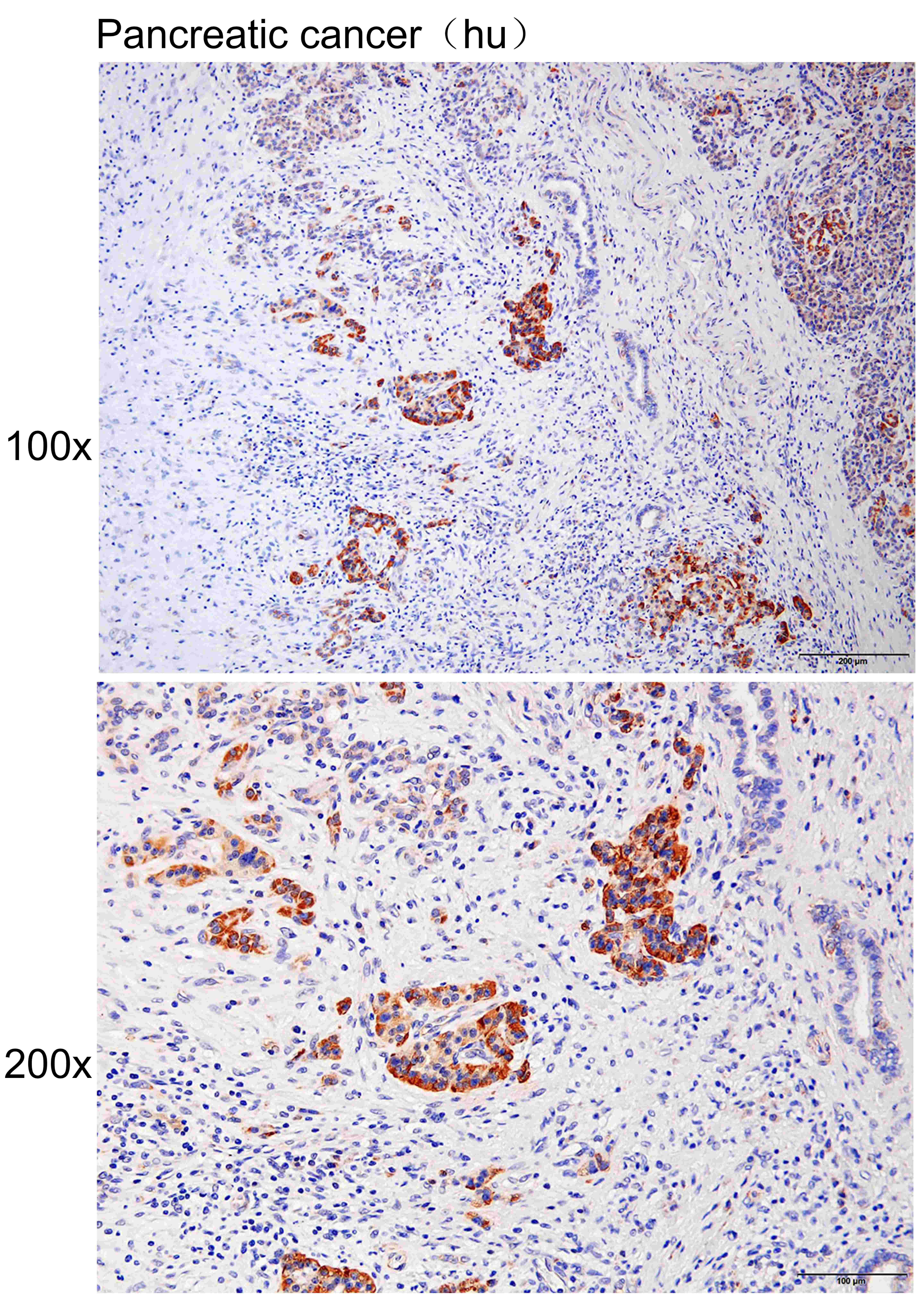 Immunohistochemistry of paraffin-embedded Human pancreatic cancer with Vimentin antibody diluted at 1:200