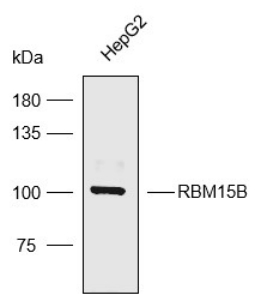 Western blot analysis with RBM15B antibody diluted at 1:6000;Lane:HepG2