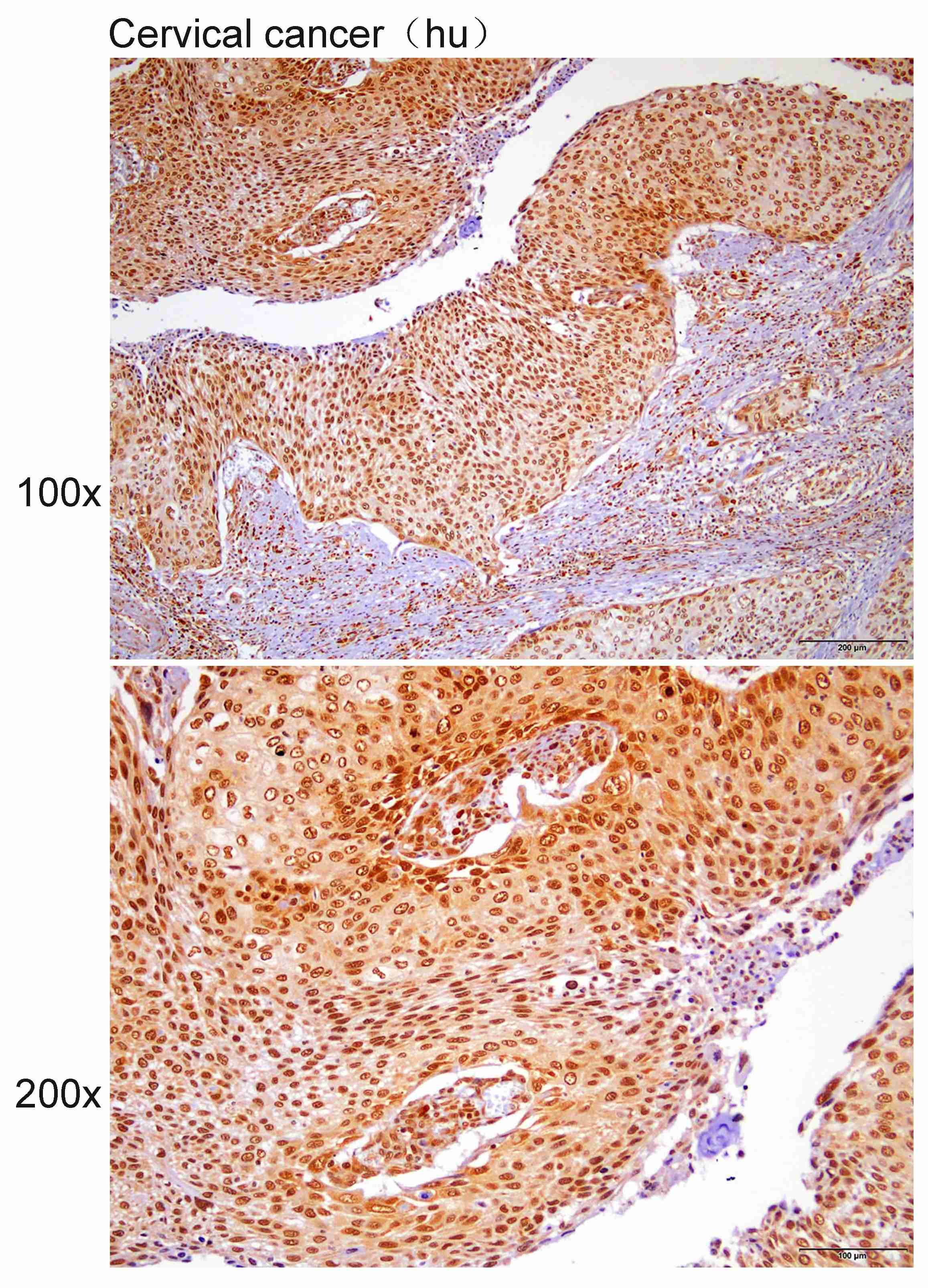 Immunohistochemistry?of?paraffin-embedded?Human Cervical cancer?with?RBM15B antibody diluted