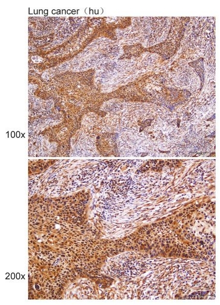 Immunohistochemistry?of?paraffin-embedded?Human Lung cancer?with?GALT antibody diluted at 1:50