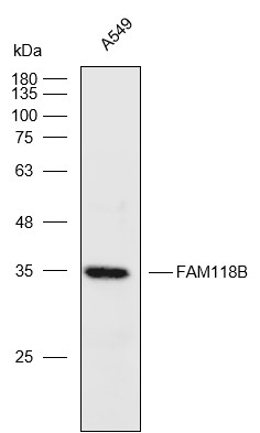Western blot analysis with FAM118B antibody diluted at 1:6000;Lane:A549
