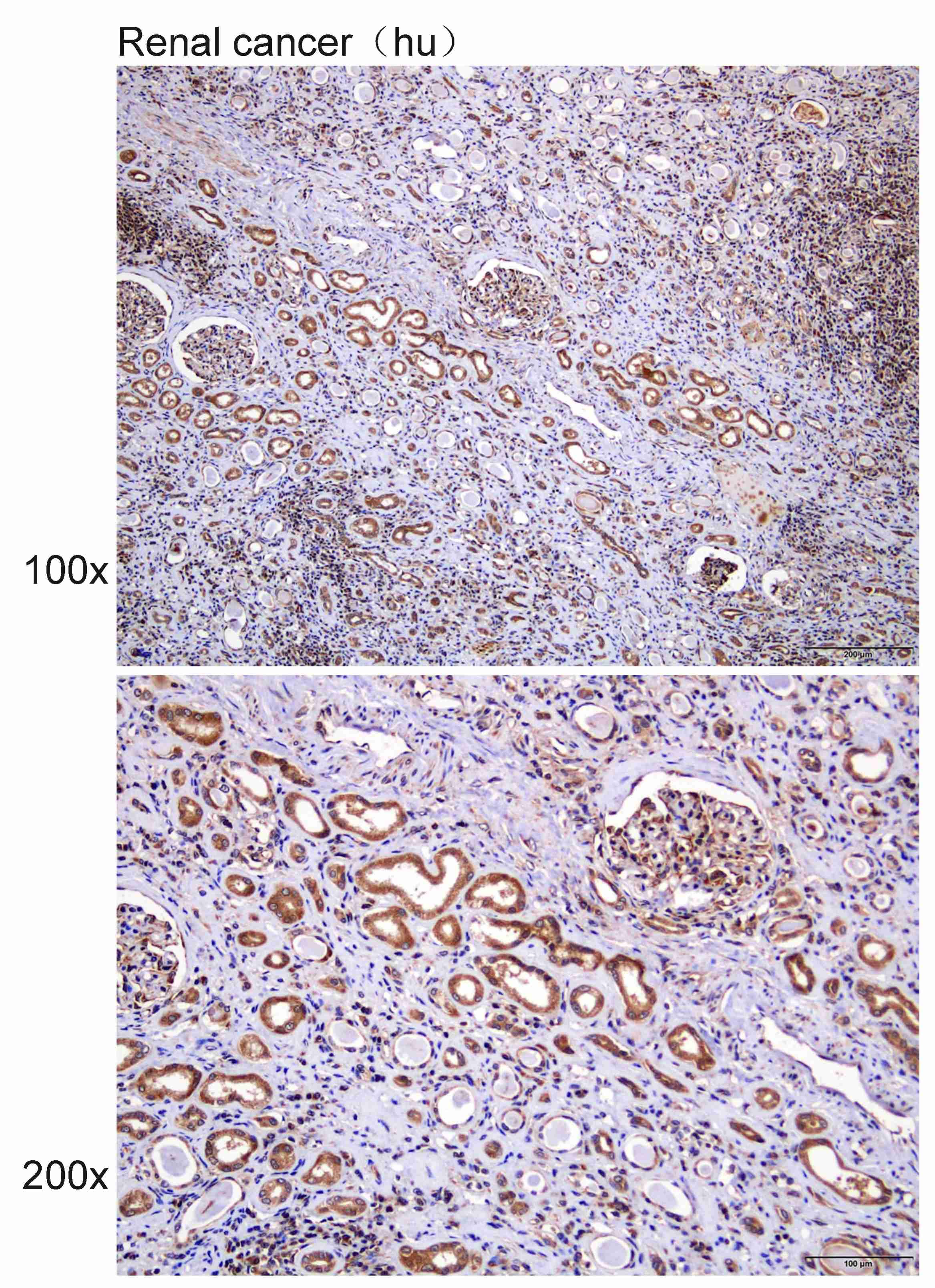 Immunohistochemistry?of?paraffin-embedded?Human Renal cancer?with?FKBPL antibody diluted at 1:50